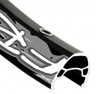 Jante de vélo à profil aérodynamique à piston conçue pour tous les types de vélos de route équipés de freins à disque. Les trous de rayon ont un piston en acier. Le plus souvent utilisé pour les vélos de montagne.