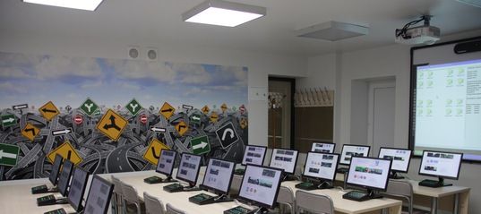 Dans les classes pour les cours théoriques, il y a des ordinateurs, des mannequins pour la pratique des compétences. Chaque élève recevra des connaissances sur les règles de circulation, fournira les premiers soins à une victime d'un accident, apprendra en quoi consiste une voiture et apprendra à résoudre des exercices d'examen.