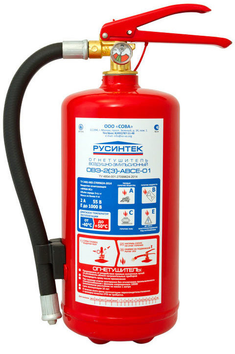 Air - mousseux, production biélorusse. Un modèle efficace pour éteindre divers combustibles. Malgré son excellente capacité, il présente un inconvénient important - l'impossibilité d'utiliser l'appareil à basse température. Ceux. Vous pouvez dire que c'est saisonnier. Et aussi, en raison de son efficacité, son prix est élevé - 7 000 roubles.