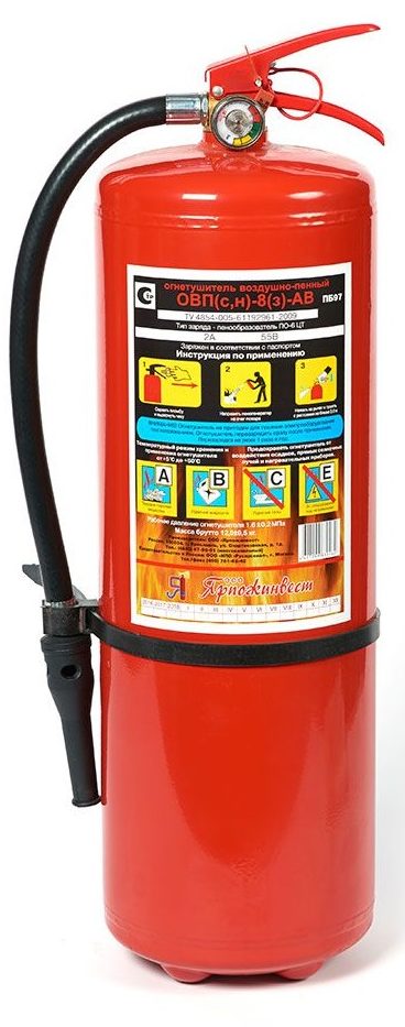 Produit à Yaroslavl. Fait référence au type d'air - mousse. Il a un volume assez important - 8 kg et un prix bas - 1350 roubles. Mais avec tout cela, cela ne produit pas l'effet escompté, c'est-à-dire ne remplit pas pleinement ses fonctions. Lors de la vente, les consultants vous informeront certainement des limites de cet appareil. Ils sont liés au régime de température dans lequel il est utilisé. Habituellement, il n'est pas inférieur à 0 degré. Les extincteurs de ce type sont parfaits pour les achats en gros.