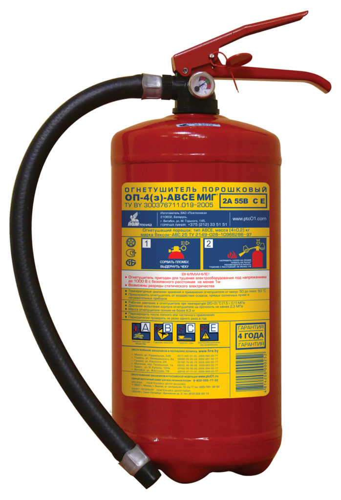 Il est utilisé pour éteindre les installations électriques, les substances combustibles liquides et solides. Le prix moyen est de 1300 roubles.