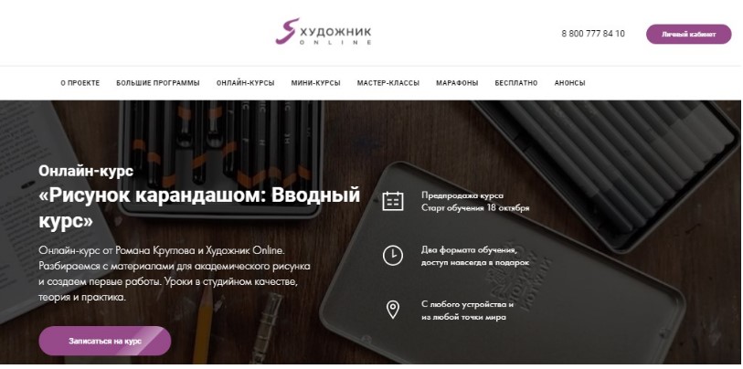 La version de démonstration comprend cinq leçons gratuites. Le sujet des cours prend en compte les préférences individuelles de l'étudiant. Tout au long de la période, les mentors fournissent des commentaires, offrant une aide opportune pour maîtriser les sujets difficiles. Si vous le souhaitez, vous pouvez pratiquer seul, au rythme abordable choisi. Une grande attention est accordée au programme de base du dessin académique, de sorte qu'à l'avenir, une personne pourra créer librement et avec compétence ses propres chefs-d'œuvre. Prix moyen : 10 000 roubles.