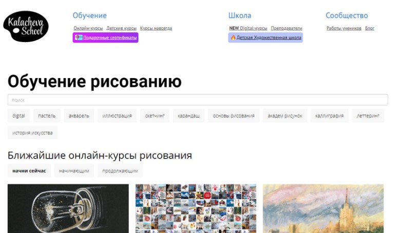 Le projet en ligne de l'artiste Veronika Kalacheva a gagné la confiance et l'amour des adultes et des enfants qui souhaitent apprendre à dessiner comme des professionnels. L'équipe emploie un important corps enseignant composé de jeunes joueurs ambitieux et de professionnels talentueux dans leur domaine, parmi lesquels figurent des portraitistes, des illustrateurs, des aquarellistes, des pastels. Tout cela permet de transmettre aux étudiants une riche documentation sur les beaux-arts de diverses directions et techniques. Adapté aux débutants et aux plus expérimentés, il existe un parcours pour les enfants. La durée de la formation est d'environ 6 mois, au cours desquels les étudiants reçoivent les bases théoriques nécessaires au dessin académique, ainsi que des compétences pratiques et toutes les compétences nécessaires au contrôle à main levée sur papier à l'image de diverses images. Tout le monde parvient à rassembler un portefeuille de 15 à 20 œuvres. Une fois diplômés, ils reçoivent un diplôme.