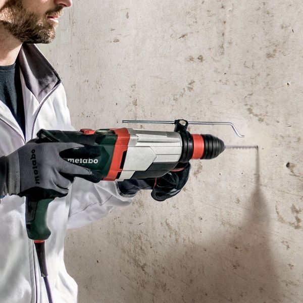 - Pendant le processus de travail avec un marteau rotatif, il est nécessaire de porter des gants caoutchoutés, car cela aide à réduire les vibrations sur les mains. Une caractéristique distinctive de l'outil de perçage du fabricant Metabo est la présence d'inserts en caoutchouc sur de nombreux modèles. Il réduit également les vibrations.