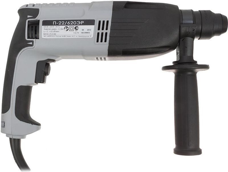L'échantillon d'INTERSKOL est un modèle populaire pour les besoins du consommateur moyen. Fonctionnant en standard à 2 modes : avec térébration normale et térébration avec action percutante, il produit jusqu'à 1100 tours. La force d'impact de l'appareil est de 2,2 joules à une fréquence d'impact de 5050. L'étalonnage pour le béton est de 22 mm et l'intensité consommée est de 620 watts. En présence d'un interrupteur pour faire tourner les brosses, ce marteau présente un petit inconvénient - l'absence d'usinage utilisant des mouvements alternatifs. Prix moyen : à partir de 2000 roubles.