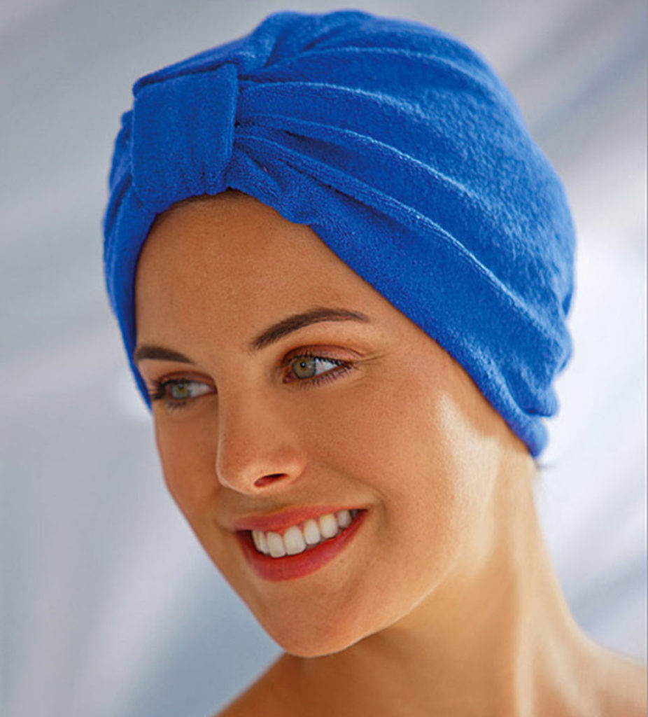 Convient aux cheveux secs ou bouclés sujets à la casse. Absorbe parfaitement l'eau et ne blesse pas les boucles. Vous pouvez acheter un turban régulier ou spécial, qui est solidement fixé sur la tête. À propos, les bonnets en microfibre peuvent être utilisés comme isolant supplémentaire lors de la fabrication de masques capillaires.