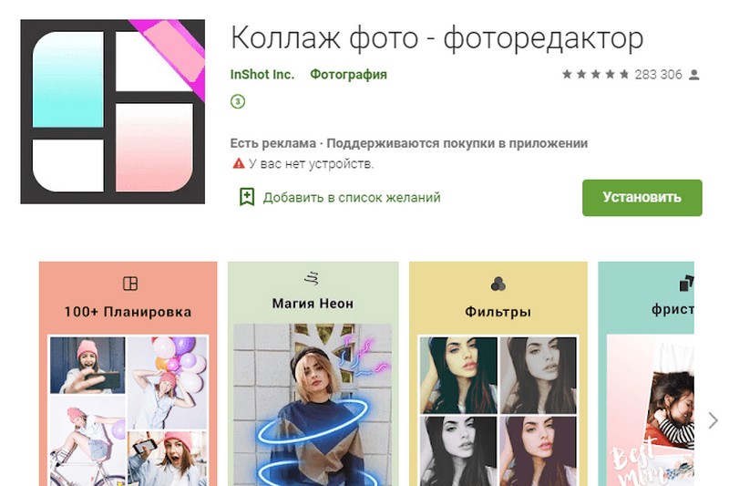 IMPORTANT! Actuellement, il est déjà assez difficile de trouver des éditeurs de collages de photos entièrement payants à la fois sur l'App Store et sur Google Play.Habituellement, ces programmes sont des «sharewares» et soit certaines fonctions sont désactivées (qui sont incluses moyennant des frais), soit ils laissent une preuve de l'absence de paiement d'inscription sur le collage résultant (par exemple, un filigrane indélébile sous la forme de le logo du développeur).