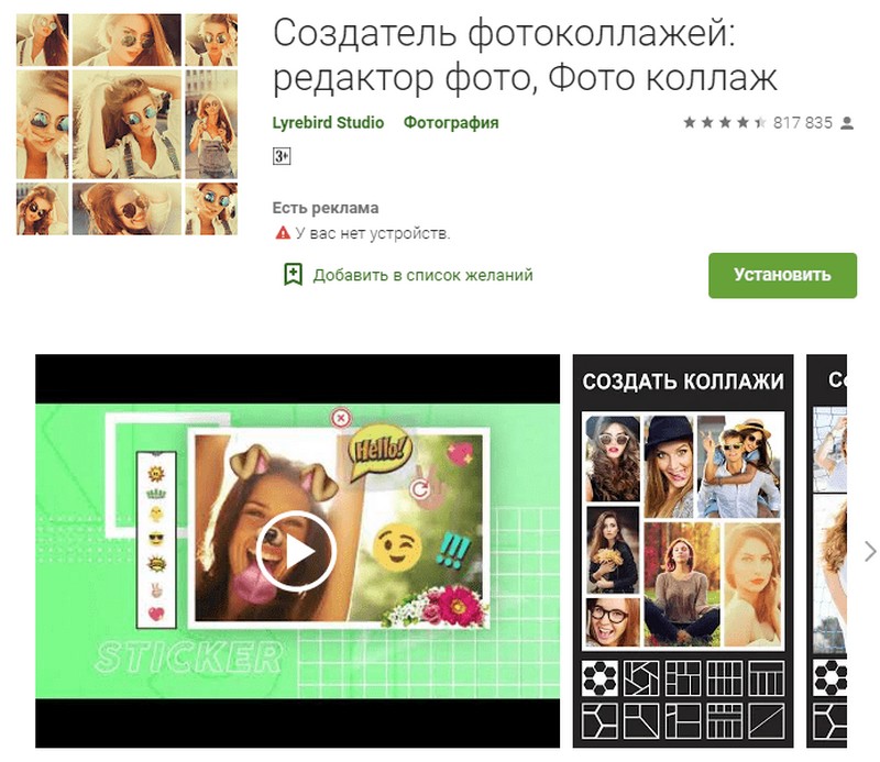 Cet éditeur de collage est à la fois le plus populaire et le plus puissant, comme en témoigne sa cote élevée dans la boutique Google. Pour un travail pratique, l'utilisateur dispose de nombreux cadres, autocollants, textes, polices et autres décors numériques. Séparément, il convient de mentionner la possibilité d'auto-création de polices. Le programme est capable de fonctionner même avec les anciens modèles de smartphones, alors que ses fonctionnalités ne diminuent pas du tout. L'application est développée pour Android.