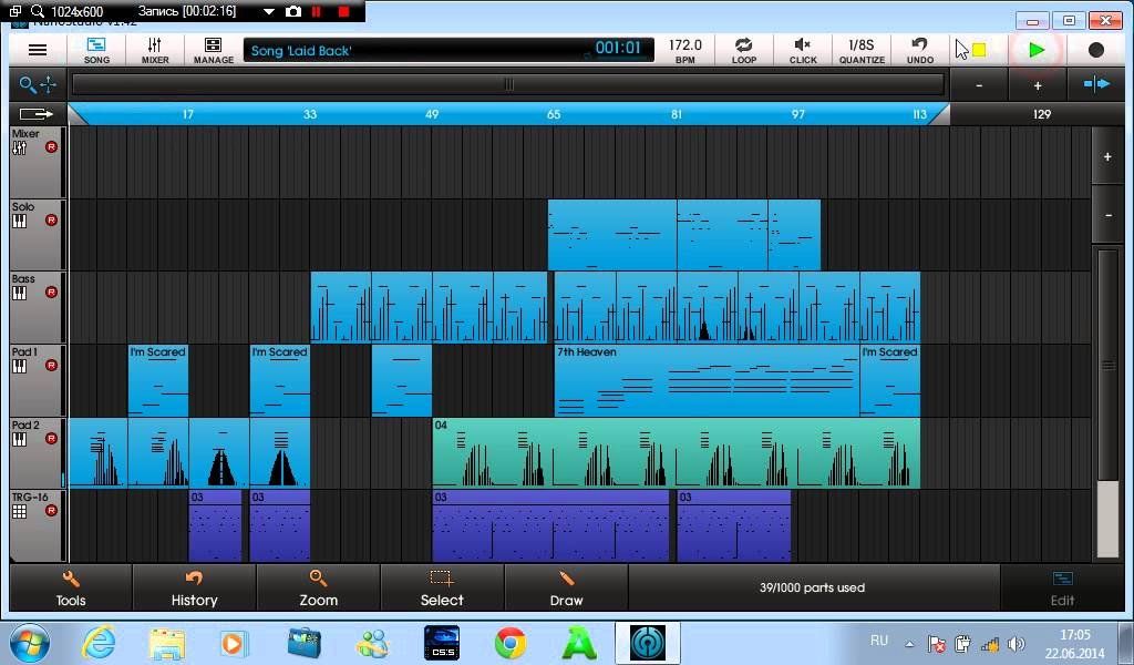 Vous permet de créer et d'éditer des chansons. Malheureusement, ses fonctionnalités sont très limitées. La rareté des outils est due au programme gratuit. En raison du petit volume et des fonctionnalités simples, vous pouvez même travailler à partir d'un téléphone portable. Des mélodies peuvent être créées à l'aide d'échantillons et d'un synthétiseur virtuel. Les développeurs ont installé un certain nombre d'astuces, mais elles, comme l'ensemble du "programme", sont construites en anglais.