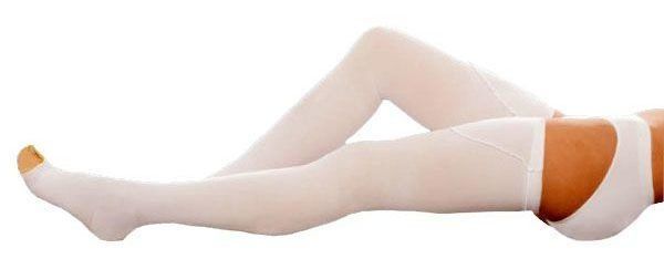 Les sous-vêtements de compression favorisent l'écoulement du sang des veines saphènes et préviennent la formation de caillots sanguins. En raison du port de bas, le gonflement est réduit. En raison d'une compression uniforme, le flux sanguin se normalise, la congestion dans les veines diminue. Il faut choisir des bas anti-emboliques sur recommandation du médecin traitant.