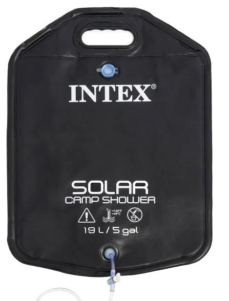 Coût : 620 roubles. Appartient aux types touristiques, peut être utilisé pour une parcelle de jardin. Le volume du sac est assez important - 20 litres. Pour laver une personne, vous avez besoin de 4 à 10 litres. À une température de 25 degrés, tout le contenu du sac chauffe en environ une heure et demie, il doit être placé avec le côté noir vers l'extérieur. Pèse 455 grammes, taille globale - 41x58 cm.Le diamètre de l'arrosoir est de 40 mm. Suivant les conseils du fabricant, pour le fonctionnement, il est nécessaire d'ouvrir la vanne de l'arrosoir, après la fin de l'utilisation - fermez-la. L'ensemble comprend une poignée en plastique, un tuyau, un arrosoir avec valve, un crochet, une corde et un réservoir en matériau souple.