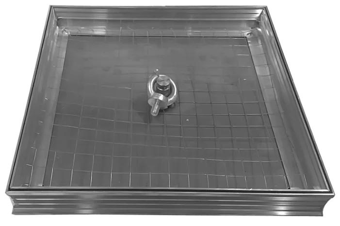 Vue du sol sous la tuile pour 2280 roubles. Il y a une poignée pour l'ouverture. Toute la structure est en aluminium, il y a un joint. Profondeur - 5 cm, pèse 2,6 kg.