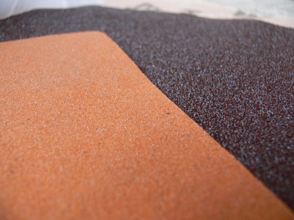 Le papier de verre à gros grain peut remplacer les accessoires de brosse lorsque vous travaillez avec du bois. Il doit également se déplacer dans le sens des fibres structurelles. En plus du traitement primaire des matières premières avec son aide, des sillons se forment sur la surface, lui donnant en outre un aspect naturel. Le degré de netteté des rayures dépendra également de la granulométrie du papier.
