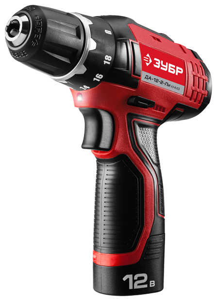 La perceuse-visseuse ZUBR ZDA-18-2 KIN20 dispose de seize niveaux de contrôle de couple, dont le maximum est de trente-six Newton par mètre. Le réducteur à deux vitesses fournit jusqu'à quatre cents tours par minute. Le mandrin sans clé vous permet de changer rapidement d'outillage. Deux batteries nickel-cadmium amovibles, chacune avec une tension de sortie de dix-huit volts, agissent comme sources d'alimentation pour l'outil.