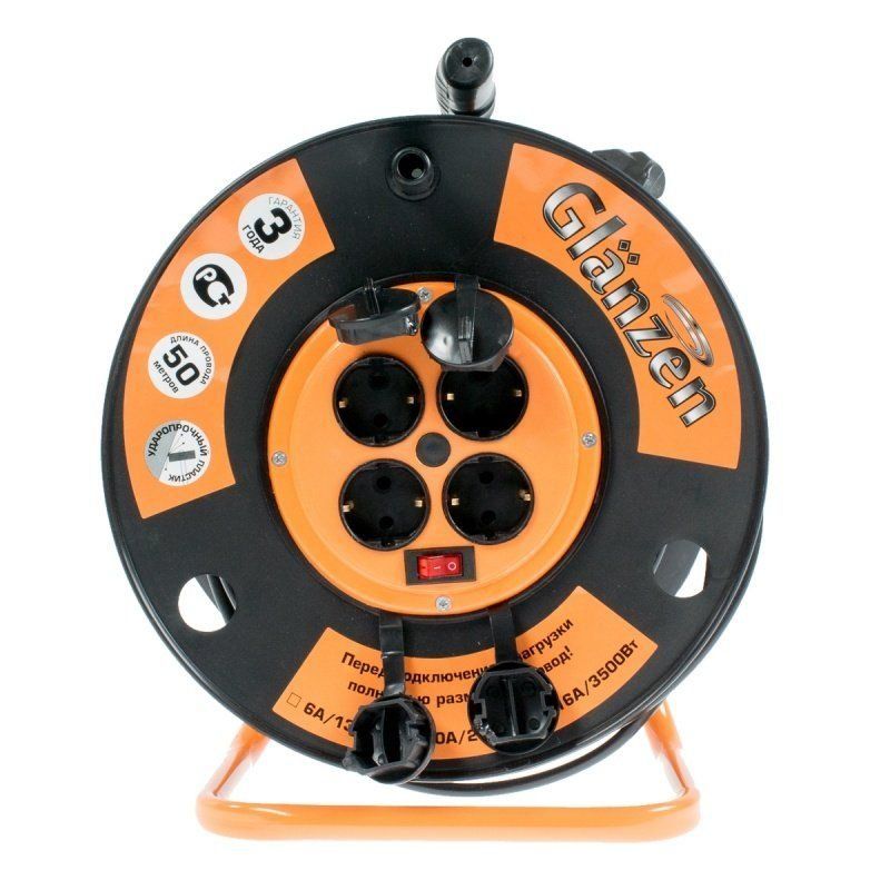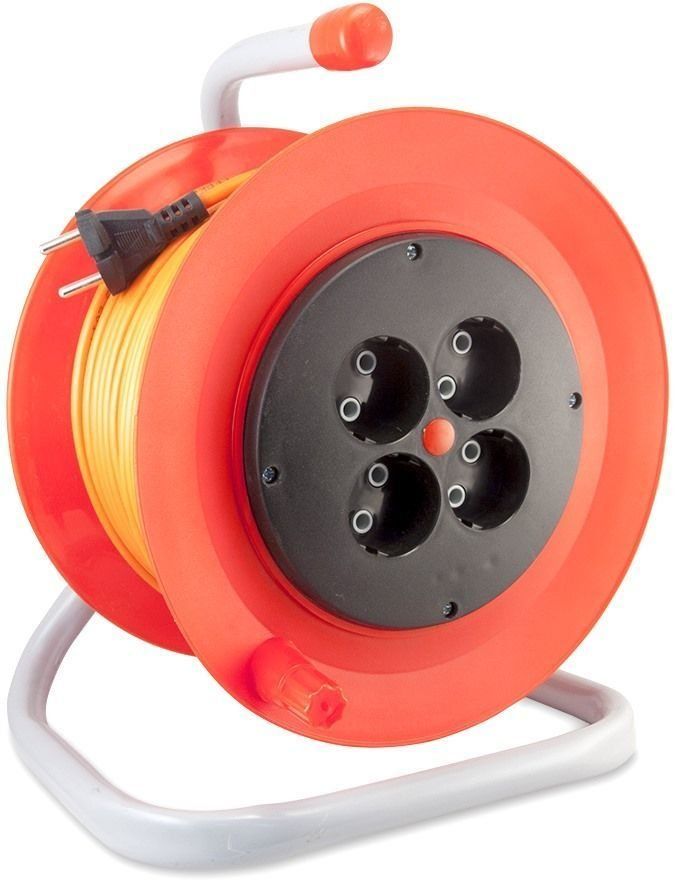 Un câble d'extension du leader du marché russe sera une solution idéale pour les propriétaires de grands chalets d'été - une longueur de fil de 50 mètres vous permettra de travailler à une distance décente d'une source d'alimentation fixe. Une poignée spéciale est fournie pour enrouler le câble, ce qui facilitera le processus. Le boîtier en plastique est léger - le poids spécifique de l'ensemble du produit n'est que de 5 kg, mais il est fiable, ce qui est pris en charge par la garantie du fabricant. Les 4 prises sont équipées de capots et intégrées dans le corps de l'enrouleur - parfaite protection contre les éclaboussures. La bobine a une poignée portable et une base en métal qui reste stable même sur des surfaces inégales.