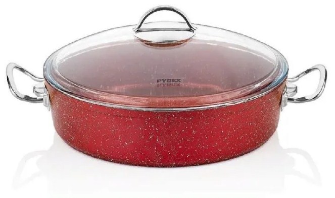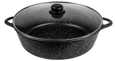 Rôtissoire avec revêtement antiadhésif en granit très résistant TITANIUM & GRANITE. Le couvercle est en verre, ce qui facilitera la cuisson - sans soulever le couvercle, vous pouvez observer le degré de préparation du plat.