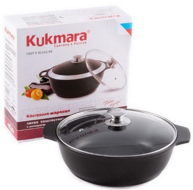 Dans la fabrication de ce produit, la méthode de moulage à froid a été utilisée. KUKMARA est une batterie de cuisine fiable avec une bonne capacité. Cela signifie que lors de la cuisson, les aliments ne tomberont pas sur les côtés et qu'ils ne devront pas être constamment « attrapés ». En outre, le fabricant note séparément l'excellente conductivité thermique et la résistance.