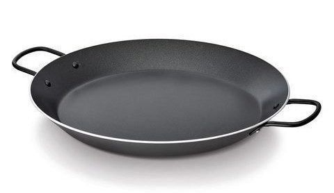 La paella est fabriquée en aluminium moulé sous pression. Il est doté d'un revêtement antiadhésif Teflon Platinum Plus. Le diamètre de la casserole est de 32 cm.