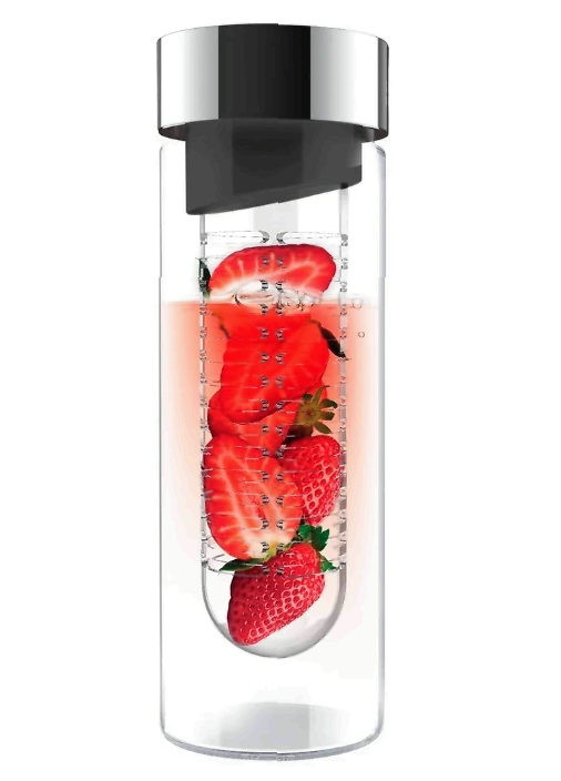 L'un des modèles les plus populaires, en plastique résistant aux chocs. À l'intérieur se trouve un flacon pour fruits ou baies, réalisé sous la forme d'un tamis, de sorte que lorsque de l'eau est ajoutée, une boisson savoureuse et vitaminée est obtenue.Il peut être utilisé pour les enfants car il a une sécurité suffisante et est pratique à utiliser.