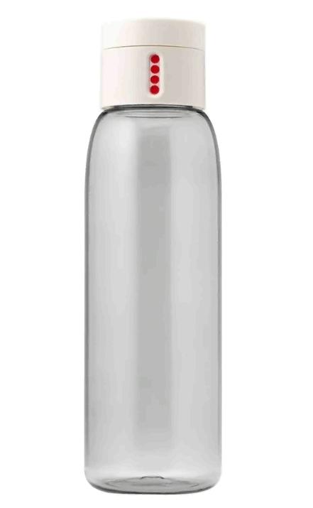 Ce contenant est composé de plusieurs types de plastique, notamment du polypropylène et du tritan. Il a une forme classique et un design ergonomique. Un système unique pour la quantité d'eau consommée est intégré dans le couvercle. Pour ce faire, vissez le couvercle jusqu'à ce qu'un point apparaisse et, lorsque vous buvez, dévissez le couvercle supérieur. A chaque nouveau versement de liquide dans le flacon, le système de référence se rallume.