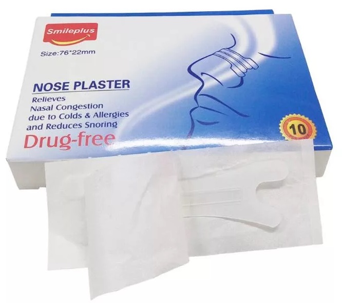 Les Chinois ont mis au point leur propre arme contre la ronchopathie - c'est le patch Nose Plaster. Le mécanisme d'utilisation du patch est très simple, attachez la bande aux ailes du nez et, en raison de ses propriétés élastiques, il commence à élargir les voies nasales. En conséquence, la respiration devient libre et les sons gênants disparaissent. Les professionnels assurent que si vous utilisez le patch régulièrement, vous pouvez éliminer définitivement la maladie. Les indications d'utilisation comprennent la congestion nasale, le sommeil la bouche ouverte, la sinusite, les difficultés respiratoires, les maux de tête et, bien sûr, le ronflement.Fait révélateur, même les athlètes sont encouragés à utiliser le plâtre nasal pour améliorer leur technique de respiration. Le gros avantage est que Nose Plaster n'a aucune restriction, ne fera pas de mal, donc essayer de se débarrasser du ronflement n'entraînera pas de tristes conséquences. La base collante vous permet de fixer soigneusement la bande et de ne pas avoir peur qu'elle se détache dans un rêve.