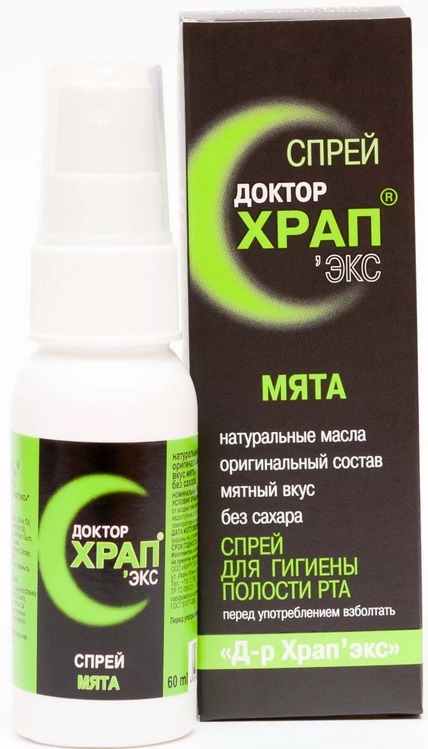 Selon les acheteurs, un spray de qualité est le Dr Khrap, qui vous permet d'éliminer les symptômes de la ronchopathie. La composition du produit comprend des ingrédients naturels qui vous permettent de normaliser en douceur la fonctionnalité du système respiratoire. Il n'y a pas de colorants et d'éléments chimiques. L'accent est mis sur la glycérine, une variété de vitamines et d'huiles. Le fabricant produit un spray avec trois types de saveurs : sauge, eucalyptus et menthe. Le médicament a un effet expectorant et tonifie parfaitement le nasopharynx. La pulvérisation du spray vous permet d'augmenter l'élasticité de la cavité buccale.
