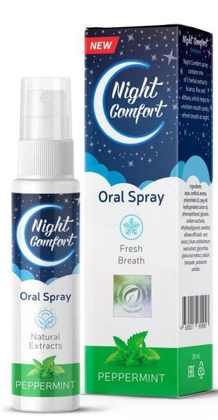 Un merveilleux spray qui procure un sommeil sain, Night Comfort. Ses principaux composants sont la réglisse, la racine de guimauve et les graines de lin. Ces ingrédients sont bien absorbés par le corps et produisent un effet bénéfique. L'outil hydrate en douceur la muqueuse buccale et le nasopharynx, soulage les maux de gorge pendant les rhumes, détruit les bactéries pathogènes et aide à éviter les processus inflammatoires. Les médecins prescrivent Night Comfort non seulement pour le ronflement, mais aussi pour les maladies respiratoires.Le spray affecte efficacement les hommes et les femmes. De plus, le fabricant affirme que son produit est sûr, il est donc autorisé à être pris par les femmes enceintes et allaitantes.