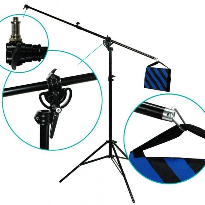 Conçu pour les petits studios photo. Vous pouvez utiliser la grue non seulement pour une solution d'éclairage, mais également pour tout autre équipement photographique.