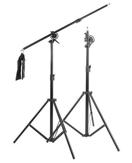 Une caractéristique distinctive des grues de studio à partir de stands est: leur installation sous n'importe quel angle et dans une direction différente; plus grande portée du trépied ; la possibilité d'éclairer le sujet d'en haut.