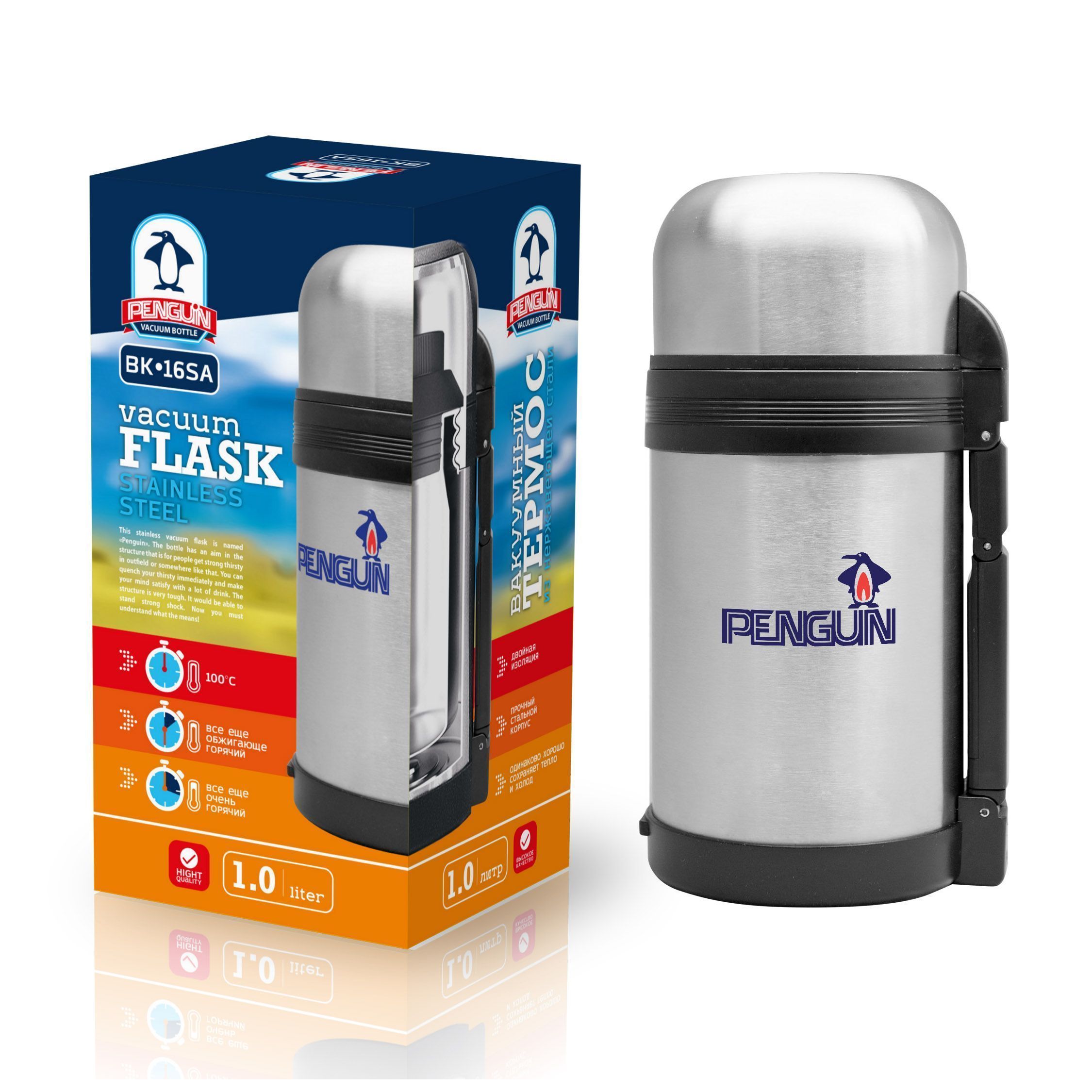 Le modèle Penguin BK-16SA peut être considéré en toute sécurité comme le meilleur parmi les thermos universels. Il maintient la température non seulement des boissons, mais aussi des aliments. La commodité de remplir le thermos avec du thé ou de la soupe est garantie par le col, dont le diamètre est de 77 mm. Capacité - 1 litre. Le thermos est capable de rester au chaud pendant longtemps, après 24 heures, la température de la boisson initialement chaude est d'au moins 52 degrés, ce qui, soit dit en passant, est l'un des meilleurs indicateurs de thermos universels sur le marché russe. Le thermos lui-même et la gourde sont en acier, un double getter est utilisé pour augmenter la durée de vie. Le confort d'utilisation est assuré par une poignée pratique et une sangle de transport qui peut être utilisée selon les besoins.