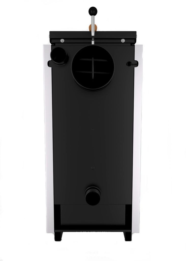 L'appareil est équipé d'un régulateur de tirage (cela permet d'influencer la vitesse de combustion des matières premières et l'intensité du chauffage), d'un thermomètre et d'un manomètre. Son échangeur de chaleur est en acier. Fonctionne au charbon ou au bois. Parfait pour les personnes qui passent à la maison principalement le soir et la nuit.