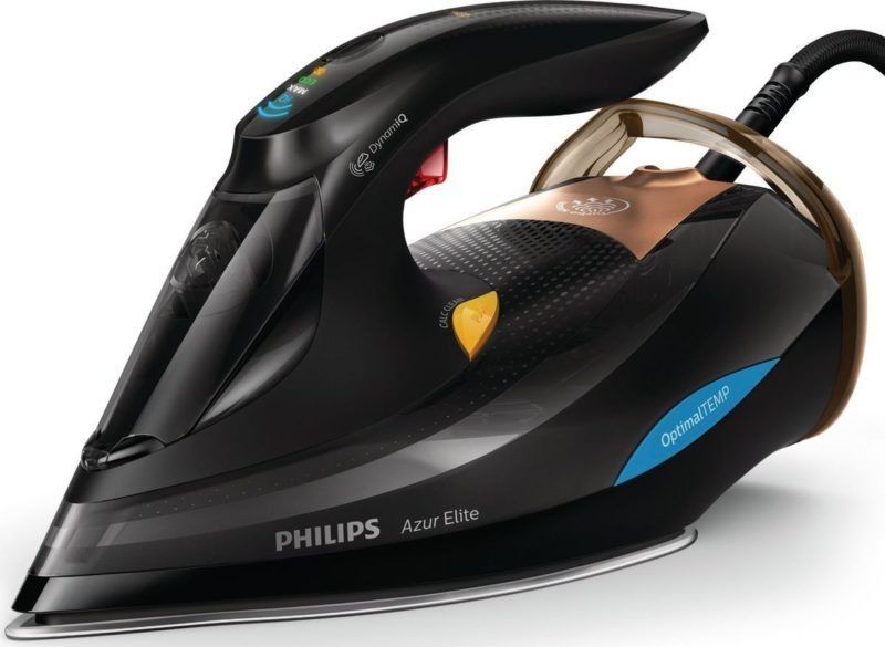 A la fin du trio de tête se trouve un fer à vapeur "intelligent" équipé de fonctions automatiques. La haute technologie n'a pas contourné le petit électroménager. Les capacités des appareils permettent de repasser les tissus les plus complexes, d'entrer dans tous les recoins. L'Azur Elite n'a pas de régulateur de température manuel. La technologie Optimal Temp vous permet de vous ajuster automatiquement au tissu souhaité et de définir un paramètre de température spécifique. Vous pouvez repasser en un seul mode sans craindre d'abîmer le tissu. Le modèle le plus puissant du classement.