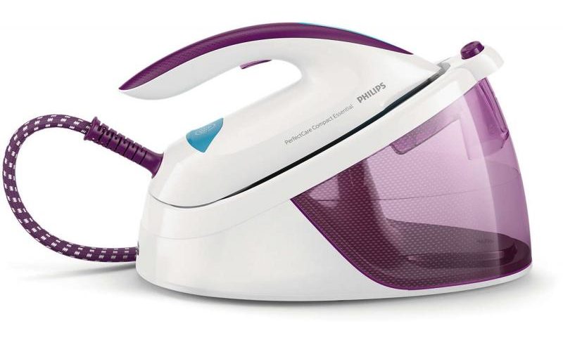 Le fer à vapeur est situé à la 4ème place. Le modèle est équipé d'un générateur de vapeur intégré avec un tuyau vapeur de 160 cm de long.Le puissant générateur de vapeur chauffe en 2 à 3 minutes. La pression de vapeur atteint 5,5 bars. La consommation d'eau est de 110 g/min. Un pressing s'accompagne d'une consommation de 250 g.Les fonctions sont anticalcaire, coup de bélier et défroissage vertical. L'alimentation en vapeur est contrôlée automatiquement. Il n'y a pas de fonction de pulvérisation dans l'appareil. Puissance du fer 2,4 kW. La semelle du modèle est en cermet utilisant le système SteamGlide.