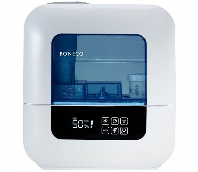 Modèle de type ultrasonique de Suisse avec assemblage tchèque. Il ressemble à une boîte miniature dont les dimensions sont de 325x360x190 mm et dont le poids est de 4,6 kg. Les acheteurs écrivent de bonnes critiques concernant l'exclusivité de l'apparence du modèle. Soit dit en passant, cet humidificateur est assez puissant.