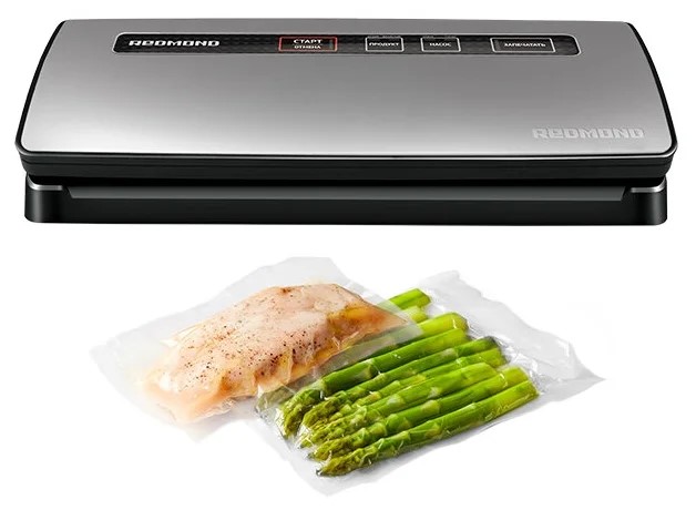 Le corps de l'appareil est constitué d'une combinaison de plastique et de métal. REDMOND RVS-M020 pèse 1,4 kg et ses dimensions sont les suivantes : 37x7,4x14,4 cm.La largeur de l'emballage dans lequel les produits peuvent être emballés à l'aide de cet appareil ne doit pas dépasser 29 cm.L'appareil est contrôlé électroniquement.