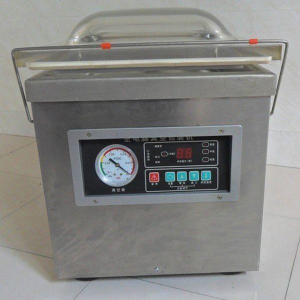Il s'agit d'un packer puissant fabriqué en Chine. Le corps est en acier inoxydable.L'installation de bureau est fournie. Le conditionnement est assuré par une pompe d'un débit de 6,5 m²/heure. La chambre a des dimensions de 39x32x13 cm, la barre de soudure mesure 26 cm de long.