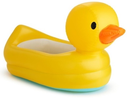 Une baignoire gonflable en forme de canard jaune vif est un produit qui peut certainement amuser un bébé. La société américaine Munchkin, fondée en 1990, est spécialisée dans la production d'articles pour enfants. Dans ce modèle, ils ont incarné un design inhabituel et un certain nombre de fonctionnalités supplémentaires, telles qu'une vanne pour vidanger l'eau et un thermomètre intégré.