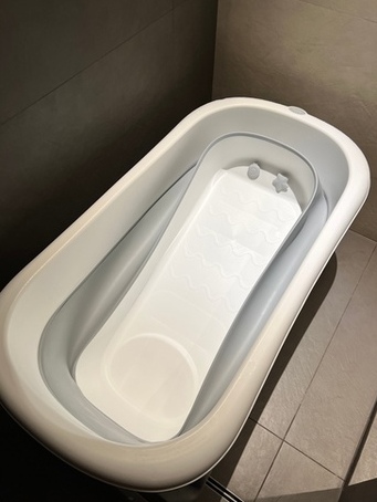 Une bonne option pour les voyages ou en cas de stockage dans des espaces restreints et exigus. Facilement ajusté au bébé et a généralement un trou pour évacuer l'eau. Cependant, ce modèle est très exigeant en matière de lavage - les rainures et les mécanismes mal lavés constituent un excellent terreau pour les microbes nocifs.Il est également important de toujours vérifier la stabilité et la résistance de la structure avant utilisation, car avec le temps, les mécanismes de la baignoire pliante peuvent tomber en panne, ce qui mettra le bébé en danger.