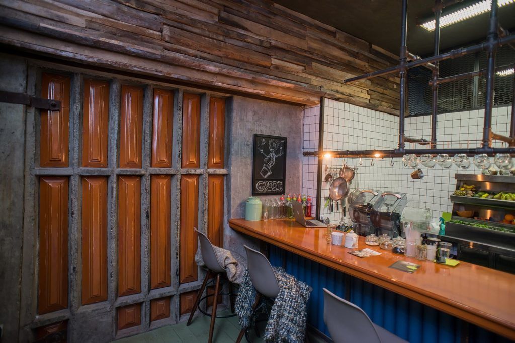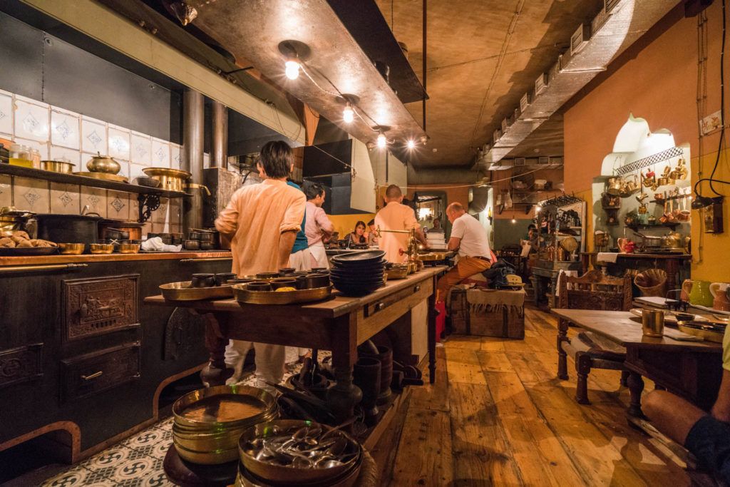 Ce café est, en fait, un lieu unique. Ses intérieurs sont entièrement fabriqués à la main. Les propriétaires du café l'ont littéralement créé en fragments et en morceaux. Pour le sol, une vieille planche imprégnée d'huile d'orange a été utilisée, les plafonds et les murs sont finis avec des carreaux d'adobe. Il y a une atmosphère chaleureuse ici. Pour ce faire, tous les visiteurs à l'entrée du café se voient proposer de se déchausser. Tous les employés du restaurant exercent des fonctions différentes, il n'y a pas de division stricte par profession. L'ensemble du processus de cuisson et de lavage de la vaisselle se déroule devant les visiteurs. Il n'y a pas de menus. Les visiteurs se voient offrir les plats que les cuisiniers préparent ce jour-là. Le café fonctionne selon les canons de la daba indienne. Tous les plats sont de très haute qualité.
