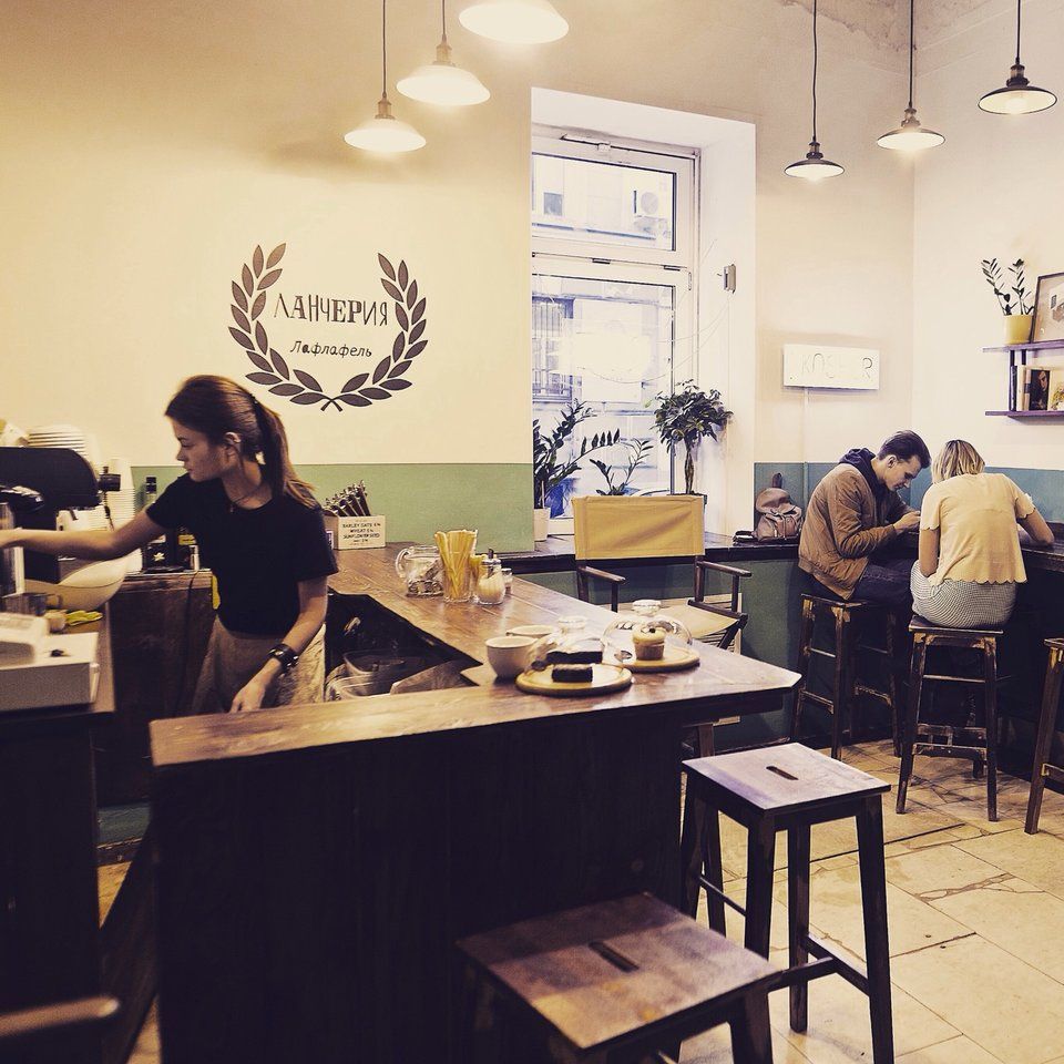 Au départ, ce n'était qu'une livraison de plats cuisinés, et ce n'est qu'ensuite que les propriétaires ont décidé de transformer cet endroit en café. Les visiteurs se voient proposer des plats de la cuisine indienne et juive. Le burger falafel est particulièrement populaire auprès des clients du café. Au lieu d'une escalope traditionnelle, une escalope de pois chiche est utilisée pour cela, les concombres en conserve ont été remplacés par des frais et une sauce tomate et mangue maison est utilisée à la place de la sauce traditionnelle.C'est juste que la brioche reste la pâte habituelle avec du beurre. Mais pour ceux qui ne mangent pas de produits laitiers, les falafels peuvent être servis dans un pain pita. Le vendredi, ce café organise une célébration symbolique du Shabbat. Tous les visiteurs du café sont invités à cette fête, quelle que soit leur appartenance nationale et religieuse. Ce café sert des boissons alcoolisées contrairement à de nombreux autres cafés végétariens.