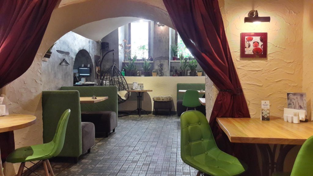 Les locaux de ce café étaient un ancien abri anti-bombes. L'établissement se distingue par des prix démocratiques, des plats et des boissons délicieux. Dans le même temps, les propriétaires de l'établissement ont eux-mêmes conçu l'intérieur, fabriqué des meubles et servent désormais les clients dans le hall. Ce café a toujours une atmosphère inhabituelle.