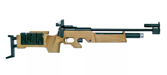 Si vous deviez enseigner le biathlon aux enfants, nous vous conseillons de faire attention à la carabine à air comprimé à ressort à ressort MP-61. C'est un excellent exemple de pneumatique avec armement manuel du ressort. La crosse réglable pratique rend l'arme idéale pour enseigner aux enfants ou pour les tireurs adultes qui ont besoin de pratique. Les caractéristiques comprennent: calibre - 4,5 mm, longueur du canon - 450 mm, poids - 2,1 kg. L'arme est livrée avec un canon fixe. Le ressort est armé à l'aide d'un levier latéral. Le MP-61 isp.09 est équipé d'un viseur dioptrique amovible, d'un guidon annulaire et d'un chargeur amovible conçu pour cinq balles comme le Diabolo. Il est possible d'attacher des ceintures, il existe des cassettes pour des magazines supplémentaires. Le matériau à partir duquel le lit ergonomique est fabriqué est un polymère résistant aux chocs.Satisfait d'une fonction telle qu'un verrou de tir, qui est activé lorsque le levier d'armement n'est pas fixé.