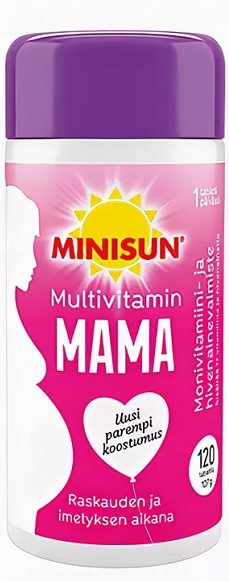 Les vitamines finlandaises Minisun Multivitamin Mama sont appréciées par de nombreuses mères allaitantes. Le complexe vitamino-minéral convient à la planification de la grossesse, de la grossesse et de l'allaitement. La particularité du complexe est qu'il est enrichi en acide folique et ne contient pas de rétinol. Mais la thiamine est présente à la dose de 5 mg. Forme de libération - comprimés, dans un emballage de 90 ou 120 pièces. Il est recommandé de prendre 1 comprimé par jour. Selon les acheteurs, le bien-être s'améliore sensiblement et des changements externes agréables sont visibles lorsque les cheveux cessent de tomber et que l'état de la peau s'améliore. Le plus souvent, ils sont commandés en ligne via une boutique en ligne.