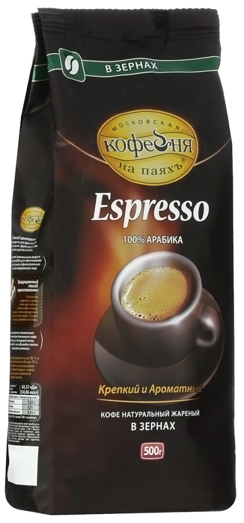 L'emballage sous vide protège le produit de l'humidité et aide à préserver les propriétés du café et sa haute qualité. Stockez le produit à une température ne dépassant pas 27 ˚ et une humidité jusqu'à 75%. 100 ml de boisson infusée contiennent environ 0,7 % de caféine. Espresso tonifie, aide à se concentrer et augmente l'énergie.