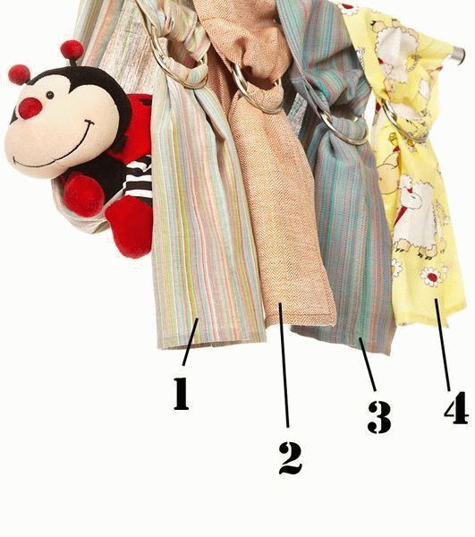Sling avec anneaux, le matériau principal est le lin naturel. Diffère par la facilité, la compacité et la simplicité d'enroulement. Des anneaux fiables et stables assureront et protégeront l'enfant. La forme du modèle permet au bébé de prendre la bonne posture. Il a un effet positif sur le corps en croissance.Cependant, une charge régulière sur l'épaule nécessite de changer périodiquement de côté, ce n'est pas très facile à faire sans étrangers.