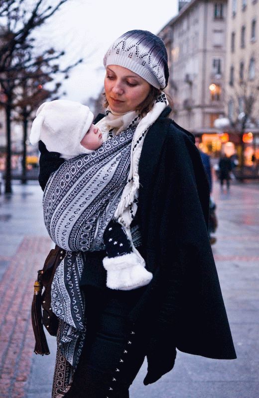 Poche bandoulière. Produit à partir d'une texture dense. Particulièrement adapté pour une utilisation en hiver. Permet d'être dans différentes positions avec la mère. Il est proposé en 2 versions et est calculé pour les bébés pesant jusqu'à 12 kg. Il est fourni avec des sangles élastiques et un système de maintien du dos de la maman. En stock le réglage du volume de l'échantillon à partir de la croissance de l'enfant.