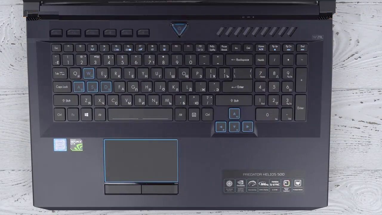 Le clavier à membrane ergonomique est également conçu pour un jeu confortable. Les touches divisées ont une disposition pleine grandeur avec un pavé numérique supplémentaire et une course moyenne des touches. Les blocs fréquemment utilisés sont surlignés en bleu : WASD et les touches de navigation, ce qui est important dans un ordinateur portable de jeu et facilite la perception visuelle d'un joueur.