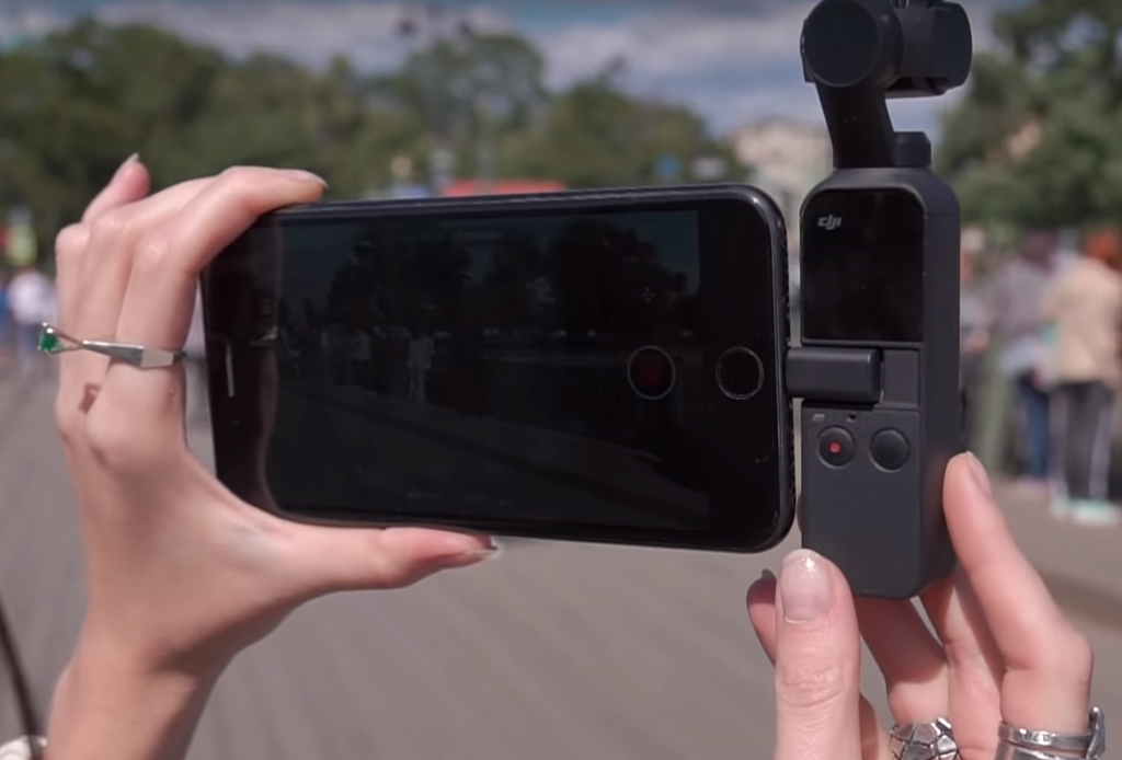 Une caractéristique distincte d'Osmo Pocket est le port auquel les adaptateurs du kit (USB-C/Lightning) sont connectés. C'est ainsi que vous pouvez connecter le téléphone à l'appareil photo, bien que la fixation ne soit pas très serrée et que le principal avantage de l'appareil photo soit perdu - la compacité. Soit dit en passant, l'un des aspects positifs est un grand nombre d'accessoires qui élargissent considérablement les capacités de la caméra, ainsi que la possibilité de la monter dans le système GoPro. Mais il y a aussi des inconvénients - DJI n'hésite pas à mettre des prix assez élevés sur ses accessoires, bien que les fabricants tiers soient adjacents à des alternatives assez compétitives.