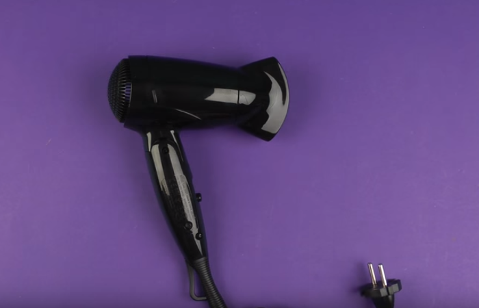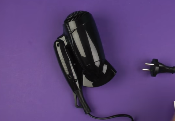 Puissance du sèche-cheveux 1200 watts, il y a deux réglages de température et une boucle pour accrocher. Le mécanisme de pliage est entièrement mobile et conçu pour une utilisation répétée.