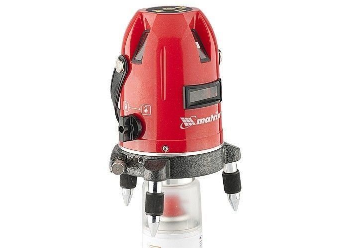 Ce modèle est déjà considéré comme un équipement professionnel, ce qui est assez cher - 6000 roubles. Si vous devez effectuer une refonte majeure, mais que vous ne voulez pas passer beaucoup de temps, le niveau Matrix 35061 contribuera à accélérer considérablement le processus. Fabricant - Chine. Il a la possibilité d'afficher l'inclusion de 5 rayons à la fois. Soit 4 faisceaux verticaux et 1 horizontal. Ce sont de très bons indicateurs pour travailler aussi bien à la maison qu'à l'air libre. Chacune des lignes est construite séparément, selon les souhaits du propriétaire. De plus, l'appareil peut être pré-aligné.